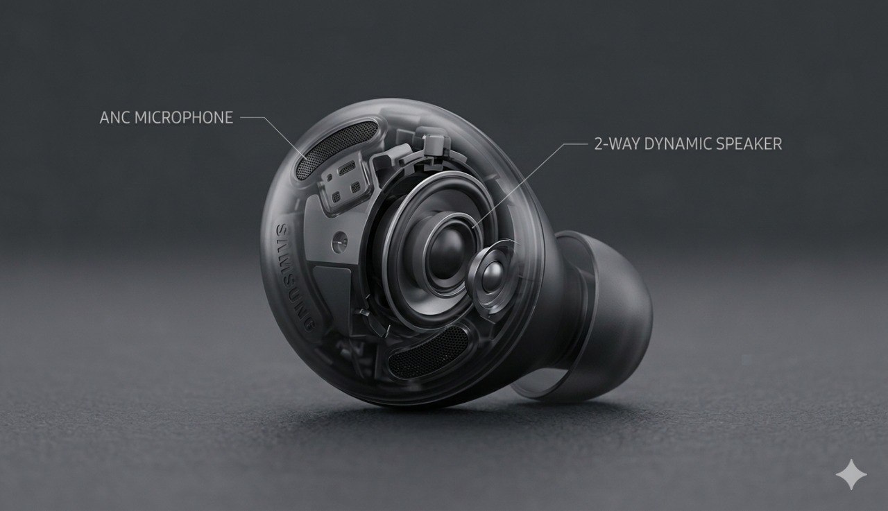 Флагманская модель направлена на тех, кто почти постоянно находится в наушниках. Благодаря увеличенной эффективной площади вуфера низкие частоты звучат натуральнее и не искажаются даже при максимальной громкости. Рассмотрим характеристики Galaxy Buds 4 Pro:
